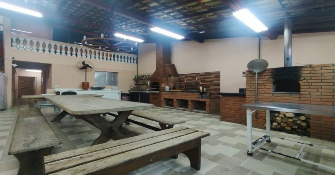 COM CHURRASQUEIRA, FOGÃO A LENHA, FORNO DE PIZZA
